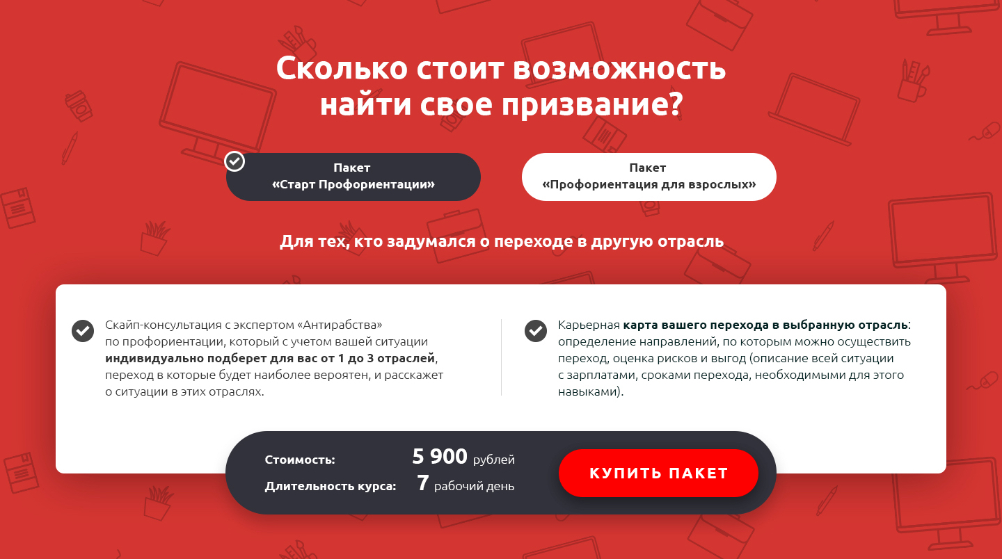 Онлайн-проект Алены Владимирской для трудоустройства и профориентации.